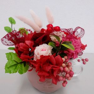 おはようございます。 今回のプリザのレッスンは、アフタヌーンティーです。 ビビッドな赤色で、元気をもらえます🎵