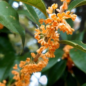 季節が一気に進むと同時にこの花たちも次々と咲き始めてます。 数か所で良い薫を辿って行くとそこには「金木犀(キンモクセイ)」が咲いてますね。 なんとも可愛らしい花単体はプロペラ形したオレンジ色の花🧡 言わずと知れた三大香木のひとつです😊 モクセイ科モクセイ属常緑高木 類似の白花の木は、銀木犀(ギンモクセイ) 花言葉「謙虚」「気高い人「真実」「初恋」「陶酔」