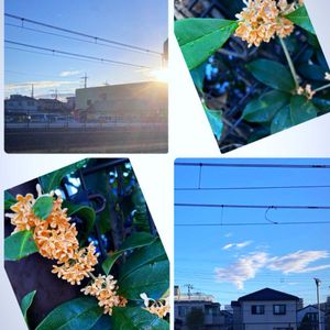 🌅🩵 心地よい 陽射しを浴びて 朝イチのお散歩🐶🐾ᵕ̈•*¨*•.¸♬︎ なぜ🤔 今年のキンモクセイは 長~く咲いてるね(*ˊᵕˋ*♡