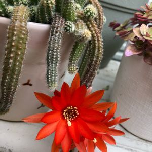 ᰔᩚ ᥫᩣ 紐サボテン 白檀 2つ3つ目撮れずに 4輪目です🧡✨ 今日もよか一日に♥(*´꒳`*)ヨキヨキ🌸🍀