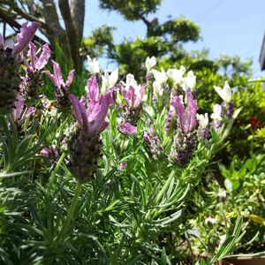 お買い物先の池の縁はラベンダー満開。 蜂🐝さんが忙しそうに飛び回ってました~