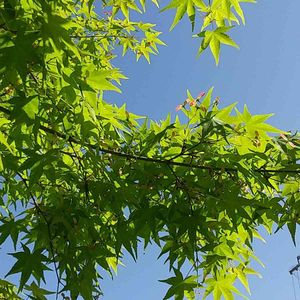 4月26日。 青空に紅葉の青葉。プロペラ状のタネが赤みを足してかわいいね!