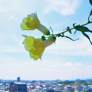 🌿空を泳ぐ🌿 一度やってみたかったんです、これ。金魚草🌿 本当は、青空に赤が良かったんですが、うちのベランダにいるのは黄色だったので🎶