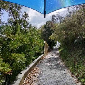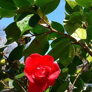 椿、でしょうか? 雨なのに青空。 どこから降ってるの??