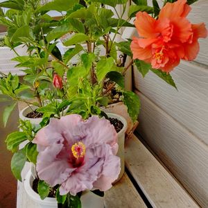 ①②③今咲いているハイビスカス達 ④今朝、庭にねこちゃん、黒、キジトラ、茶トラ(赤ちゃん)がしばらく遊んでいました😺 ネコちゃんはよく通るけど、四匹は初めて、 可愛かった。 その中の一匹が鉢の中でお昼寝してました😹 ⑤みーちゃんは部屋の中で興奮しまくり、、😹