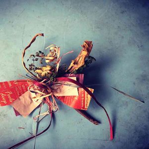 ドライフラワーを使って ラッピング用のリボン作り 全て一点もの 今日の作品