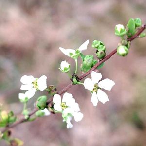 今日の花ユキヤナギ 職場近くの神社の境内の物です まーるくカットされて、お花が少しだけ咲いてました♡