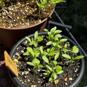 プランターに種をまいておいたほうれん草・ベビーキャロット🥕の芽🌱🌱が出てきた😊✨パクチー🌿は夏の終わりからかなり時間がかかって🌱成長が遅い😅