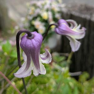 壷方クレマチス 古代紫 壷形のフォルム、キュンしちゃいます 毎年うどん粉病が出ますが、今年は全然出ないです もしかしたら、秋から定期的に活力剤撒布してるからかしら? お花も例年より大きい感じがします💜