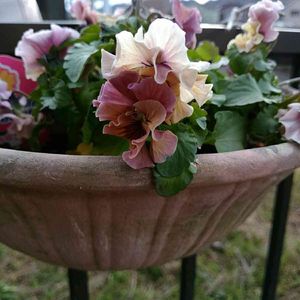 感化されてフリフリパンジー買いました❤ 左2つはビオラです。 いつもはビオラ派なんやけど… 大体、紫〜ピンクの色味を買うことが多いんやけど… フリフリパンジー、イタリアンジェラートって書いてた😆 どのへんが??