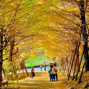 岐阜県各務原市の銀杏並木、通称「冬ソナロード」綺麗に仕上がって来ました😊 中央には海外からのお客さん、ウェディングフォトの撮影です😊