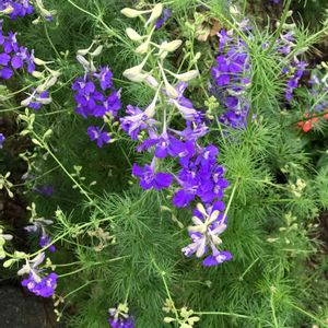 食品問屋さんの側、銀杏並木の根元に植えられていた、多分ラークスパー💠 遠くからでもかなり目立ちます♫