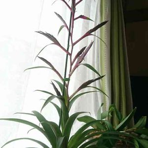 おはようございます🎵 昨日、夫が連れてきたティランジア。あれー?ティランジアってエアプランツじゃないの?と、思って趣味の園芸の本見てみたら、タンクタイプっていうことなのかな?