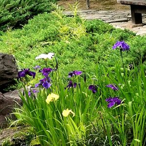 今日のお花「ウツボグサ」 日曜日に 好古園で たまたまウツボグサを撮影していたんですがあまり上手く撮れてなかったので、雨が降る中 散歩がてら 好古園まで歩いて行ってきました ①〜③ ウツボグサはクチナシの木の向こうに咲いていたので 木の葉をどけて撮影しました ④ 竹の庭には 黄色い花が咲いていましたが、去年も名前がわからなかったので 職員の方に質問したところ、よく似た花が複数あるので確定はできないけど ノカンゾウかな?ということでした ⑤ そして昨日投稿したカキツバタかも?とタグをつけたお花を違う方向から撮ったら花びらの付け根に黄色い部分が…… これはハナショウブ?