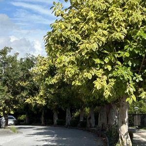 フィッカスアルテシマ 先日の那覇新都心公園にあるフィッ カスアルテシマの街路樹です。 フィッカスアルテシマはインドゴム の木を改良した品種で鮮やかな斑入 りの葉が特徴です。フィッカスアル テシマの花言葉は「永遠の幸福」で す。生命力が強く季節を問わず育て られる事から縁起の良い花言葉がつ けられたそうです。(*´∀`)♪❣️