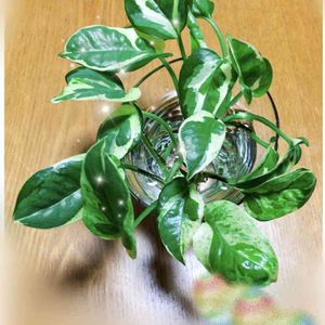 ポトスエンジョイさんもどんどん増えてきたので根っこを出し中💖 飾っててもとても綺麗な模様です🌱 普通のポトスは根っこかなりでてきたので土に入れてあげないとな💛