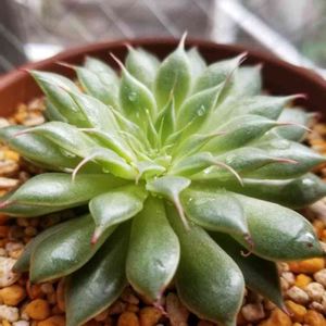 多肉さん植え替え全6鉢(第3弾w) 化粧で1センチ位、 プロトリーフの多肉用ソイル使用。 こんにちは(^^) 今日は暑過ぎず1日中晴れ☀て 過ごしやすく気持ち良い日でした。 ともさんの所と同じ シルバースター☆彡 シャープさと丸っこさを 両方持ち合わせた カッコ可愛い品種ですねぇ(*゚-゚) 先っちょ?爪?のシャープな赤も たまりません(-'ロ'- ) 頑張って成長して下さいませ┏○ペコッ