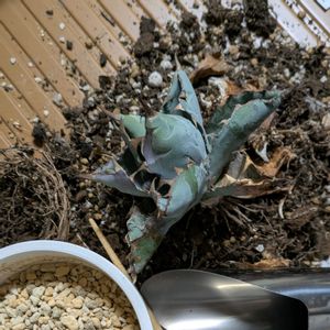 雨なので、やろうと思いつつ放置してたアガベブラックアンドブルーの下葉整理と鉢増しを行いました。 元気に育ってほしいです。