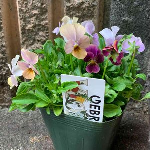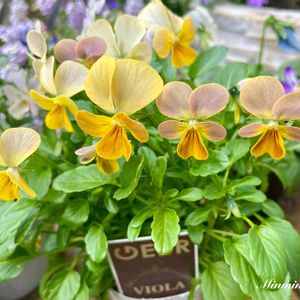 ゲブラさんのビオラも見つけました🌟 実生のMIX植えなのかな どのお花も可愛い〜(*'▽'*) タグもセンス良くてカッコいいですね✨