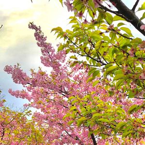 🌸河津桜🌸 だいぶお花も散ってしまった河津桜。 葉桜も見え隠れ❤️ 夕方の空に映えますね。 2020年3月撮影