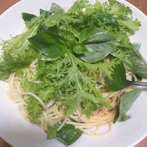 バジル、パセリ、わさび菜、大葉… 葉っぱだらけのアーリオオーリオ🌿🍀🌱🍝😆 全て自家栽培! と言いたいとこですが… プランターを引っ越しの際に手放したので、 また一から出直しです💪