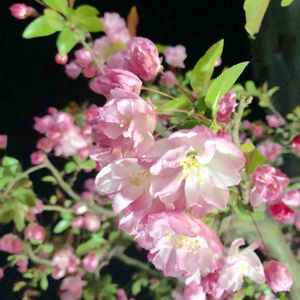 🌸花海棠 ハナカイドウ🌸 夜桜ならぬ夜花海棠🌸 電灯に照らされて鮮やかに映えてます。 2019年4月撮影