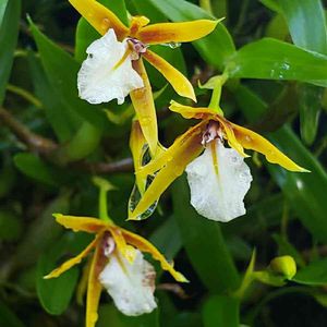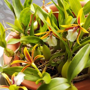 ここ1週間くらい、蘭を置いてる部屋に入ると、新しい花が咲いてるでもないのに、な~んか甘い匂いがするな~と思ってたんだけど、日曜日に水遣りしてる時に匂いの発生源を突き止めました。こいつでした。 ディネマ ポリブルボン Dinema polybulbon (Sw.) Lindl. 1831 ラン科ディネマ属 1月下旬に載せた時は、いくらクンクンしても『香ると言われればそんな気もする』程度で、正直よく分からなかったのに、咲き始めてから1月半以上、ほぼ満開になってからでも1ヶ月経ってるのに、ここに来て香る⁉️ て言うか、ポリブルボンってこんなに長く咲いてたのね。だから暖かい日は外に出せる頃に咲いてた記憶があったんだわ。 ちなみに香りは、ビスケットに挟んであるレモンクリーム、とか、ハチミツレモン、日向夏、みたいな柑橘っぽい爽やかさも有りつつの、甘さも感じられる…+やっぱりちょっとカブトムシな匂いでした😅