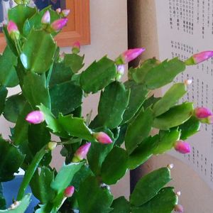 濃いめのピンクのシャコバサボテンが膨らみはじめました。 今日の最高気温マイナス2度でした。 寒すぎて感覚マヒしてまーす。😅