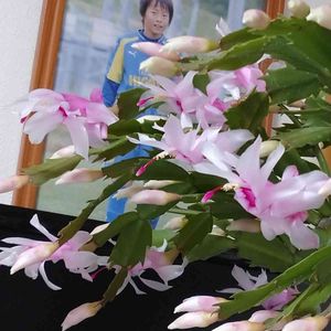 玄関に居る、シャコバサボテン ピンク。 置く場所が無くて、玄関です。 今晩から又、寒くなるそうですが、頑張ってね(*^^*)