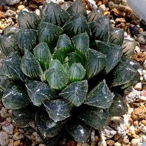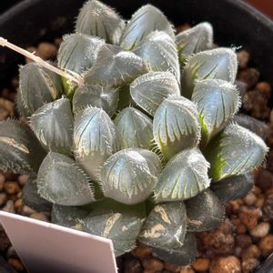 青光りするハオルチアもいくつか集めたいと思い、「赤線オブツーサ」をお迎え。 CR1と迷いました。 抜き苗だったので、これから更にキレイになるかと思います✨ 「巨大赤線オブツーサ」「巨大赤線レンズオブツーサ」などもありましたが、同じなのか違うのかわかりません😅 既に立派なので、膨らむのが楽しみです👍️ 2枚目は石井オブスタ。 別格の青光りです😌