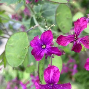 ルナリア💜 種まきしてから二度目の春 紫色の薄い花びらは 風が吹くたびハラハラと散り まあるい種サヤがたくさん♬♡ ラテン語で「月のような」という 名前を授けられたルナリア 3枚構造のサヤが熟して剥がれ 種が落ちたあと 中心の膜だけになった時 月のような姿に…✨️ 7月には見られるかな(*˘︶˘*).。.:*♡