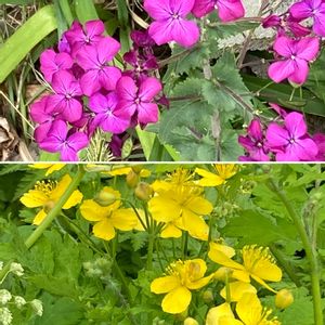 実家の近くの空き地で咲いていました。😄😄 ルナリアはアブラナ科。 クサノオウはケシ科。
