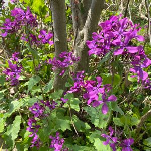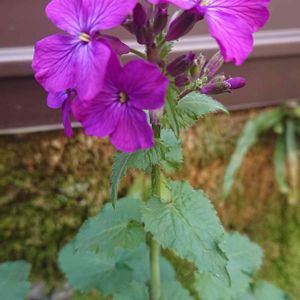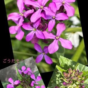 沢山 蒔いたのに ひとつだけしか 育たなかったけど 嬉しい ② ルナリア(るなりあ) 和名ゴウダソウ(合田草)、ギンセンソウ(銀扇草)ともいう。アブラナ科の二年草。 ヨーロッパ原産。日本へは1901年(明治34)合田(ごうだ)清がパリから種子を持ち帰り、栽培したのが最初で、ゴウダソウといわれる。 草丈0.4~1メートル。茎は上部で分枝し、5月に藤(ふじ)色または白色のダイコンの花に似た芳香ある花を多数開く。 花期後に扁平(へんぺい)な果実が肥大し径4~5センチメートルの小判形となる。 熟後に外皮を除くと銀白の莢膜(きょうまく)が現れ、ドライ・フラワーとして用いる。 【日本大百科全書】科名アブラナ科ギンセンソウ属学名Lunaria annua L. ゴウダソウ 標準 が、咲きましたー 2年草なので、一昨年 種蒔きました 日陰になると、紫色です うん そうそう ハナダイコンの花に似てるよー 芳香ねー 嗅いでみたよ 大根の様な、菜の花の様な 香りがー私にはしました- ̗̀(๑ᵔ⌔ᵔ๑)