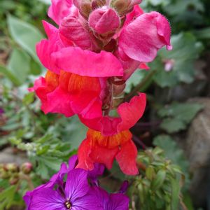今日の庭から こぼれ種の金魚草とルナリアです。