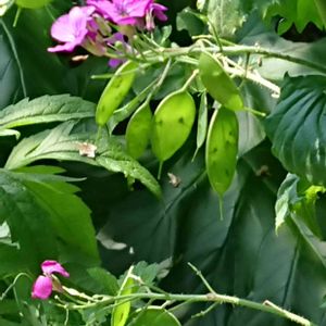 おはようございます🌦 ご近所のさんの玄関先で可愛い子を見つけました。たしかこの子は💜色の花を咲かせていた子。 種だってことは一目瞭然ですがなぜこの形🤔