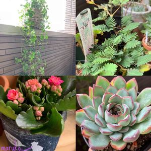 おはようございます☺️🌤 昨日のネオンブレーカーに続いてカインズで狩ってきた残り4点です❣️ ①シュガーパイン このボリュームでとにかく安い✨ ②オジギソウ 触ったら萎む面白い子💕98円💡 ③パーフェクタローズ(カランコエ) お花が可愛い過ぎ😍150円💡 ④プリドニス ピンクの縁どりにやられた〜💘うちに居ない子💡 パーフェクタローズの鉢もチョイス♡ 皆んな初めてお迎えした子達💕💕 ベランダ組の仲間入りです🤗🍀