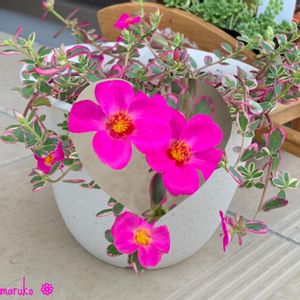 昨日の休みにHCでやっと見つけました❣️ 華ミステリア 斑入りポーチュラカ🌸マジカルキューティー とも言うらしいです。 夏に間に合って良かった😆💓 このポーチュラカは実際に見てお迎えしようと思っていたので見つけた時は、「あった〜❗️」と歓声を出してしまいました😝 昨夜植え替えて早速お水をあげたら今朝可愛いピンクの花が咲いてました💗 上の方はスカスカしてるのでカットしてさしておこうかな❣️
