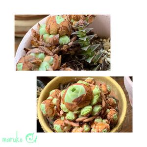こんにちは😃 このアエオ達、私が体調崩した日に届いた子達😅 3日程根っこ剥き出しのまま放置されてましたがやっと植えてあげれました💦 暫く使う予定のない亀鉢に植えました☘ 後ろ側を正面にしてしまったので亀側から見るとマリド錦が見えない😅 頑張って大きくなってもらいましょ😘