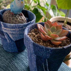 おはようございます😊 今のところ曇り空の私地方ですが晴れの予報で気温も高くなりそうです💦 梅雨入り予報は7日くらいだとか🌂そろそろ多肉さん達のお水も控える頃ですかね❓ 梅雨も夏も初めてだから不安だらけです😥 先日、素焼き鉢にデコパージュしてみました☺️ ダイソーで買ってきたデニム風の端切れ布とデコパージュ材料で🍀 手前の鉢にはティンカーベル さん❤️ もう1つはまだ植えてないので鳥さん入れてみました🐦 デコパージュは布やペーパーナプキンの柄によって可愛くなったりカッコよくなったり😏 絵心ない私には合ってます(≧▽≦)ゞ 上の縁にシワが出きてますがそこはご愛嬌ということで(* ̄∀ ̄)ゞエヘヘ