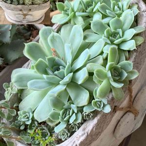 この前作ったデコパージュ鉢の片方にも多肉さん植えました😊 ウインドオブチェンジ群生さんです💕 サイズもちょうど良くシックリきてます☺️