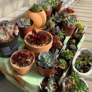 今日は姉を誘って三貴フラワーセンターへ多肉狩り行って来ました🍀 今回は大収穫💖 このデカい七福神さん850円❣️❇️4株の下には赤ちゃんも沢山います😆💚 フラワーセンターは多肉ちゃんいっぱいいて楽しかったです💕 さて、この子達をどう植えようかな🤔