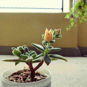 オレンジ色のつぼみ 今朝やっと、花が開きました。 多肉植物は、開花もゆっくりなんですね。 かわいいな❤