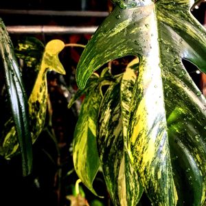 MONSTERA DELICIOSA var, BORSIGIANA WHITE VARIEGATED☆ ボルシギアナの小型タイプの子 葉っぱ4枚で土表面から約30cm位 葉っぱのサイズも手のひら位 4枚ともハーフムーン頑張ってくれてます🥰