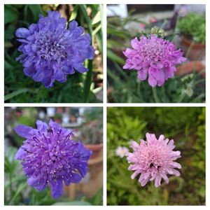 スカビオサ🌼🌿 地植えだと消えていたスカビオサ💗💙💜 鉢植えで越冬出来ました♪ ✾昨年苗でお迎えのギガ 耐寒性がかなり強い種との事! ✾ピンク色の子達は品種が不明 ➘は最近友達から譲り受けた子。 地植えで増えているようなので、我が家も期待💓 ✾種からのファーマディープブルー💙 花弁も大きくて、見応えがあります💕 今日は雨なので、昨日撮影しました🤳