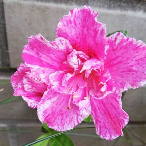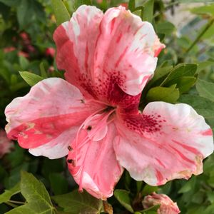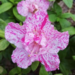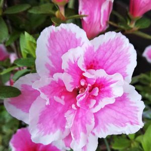 アザレアのピンク地に白縁どりのある花 2023-04-03