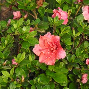 数年前に何かのお祝いに 頂いた鉢植えのアザレアです 花が終わった後 庭に直植えしていますが 今年も 春と 今頃 花をつけてます 狂い咲きなのか 2度咲き するのか
