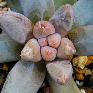 凄いウォーターマークで 成長の跡がハッキリと分かる エケベリア・トリマネンシスさん😊 夏に葉っぱちゃんの数を減らしました😢