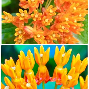 💚アスクレピアス💚 タネ蒔いて2年め。 上は、咲き始め 下は、ほぼ満開 色が鮮やかでまぶしいほどです☀️ 雨上がりの緑の中で目をひきます👀 ( * ॑˘ ॑* ) ⁾⁾