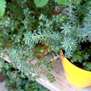 先日、知り合いからアナベルをいただいた時に カゴいっぱいの多肉植物も いただきました😆🪴 名前がわからないので、どなたか わかる方、教えて下さーい‼️ ちなみにパセリの🌿鉢植えまで いただきました🌿 ところで、ベビーサンローズって 黄色の花が咲く種類もあるんですね〜😳 初めて知ったのでびっくりでした‼️
