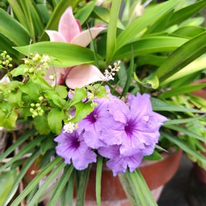 お寺の お隣の お宅で 毎年咲いています💜💜 素敵な寄せ植え💕に見える😊 ヤナギバルイラソウ? ルエリア?